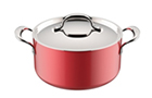 「ロッセラ」の鍋本体は、保温性と耐久性に優れたステンレス鋼に、熱伝導に優れたアルミニウムと赤いセラミック加工を重ねたマルチレイヤー構造。アルミニウムは4mmと厚く、抜群の熱伝導のため熱ムラを作らず料理を美味しく仕上げてくれます。さらに、鍋の外側のセラミック加工は調理時の傷や熱に強く、使った後のお手入れも簡単です。イタリアの情熱を思わせるイタリアンレッドカラーの「ロッセラ」は、“そのままテーブルに出せる美しい鍋”としてお持ちの調理器具の中でもひと際華やかな存在感で、毎日のお料理を上質に彩ります。