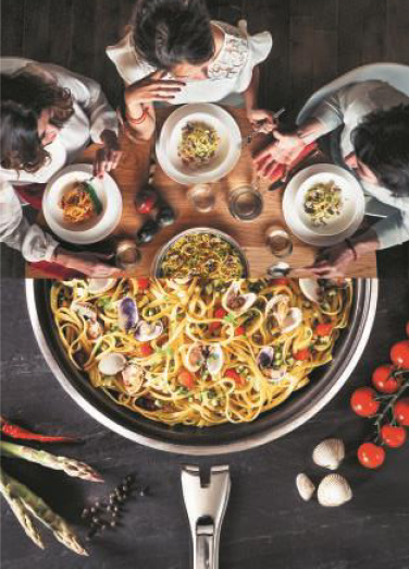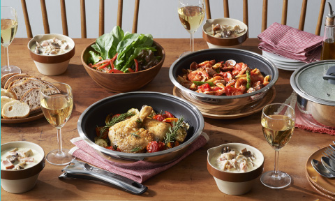 ラゴスティーナならではのエレガントなデザインにより、キッチンでの調理やオーブン調理の後、熱々のままテーブルに運び、ハンドルを外してそのまま器としても使用することが可能です。