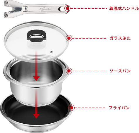 ※単品のソースパンおよびフライパンには、ハンドルが含まれておりません。